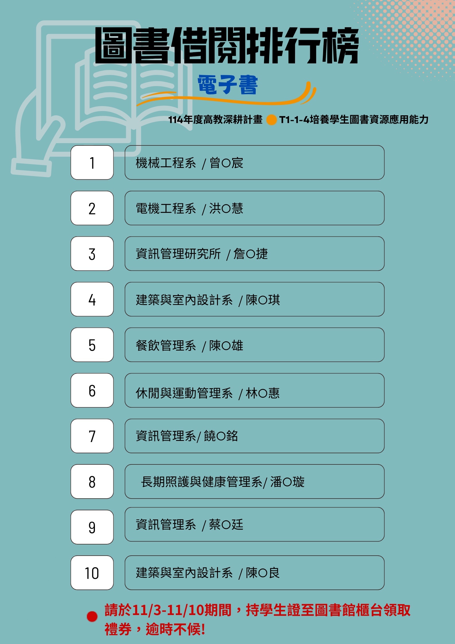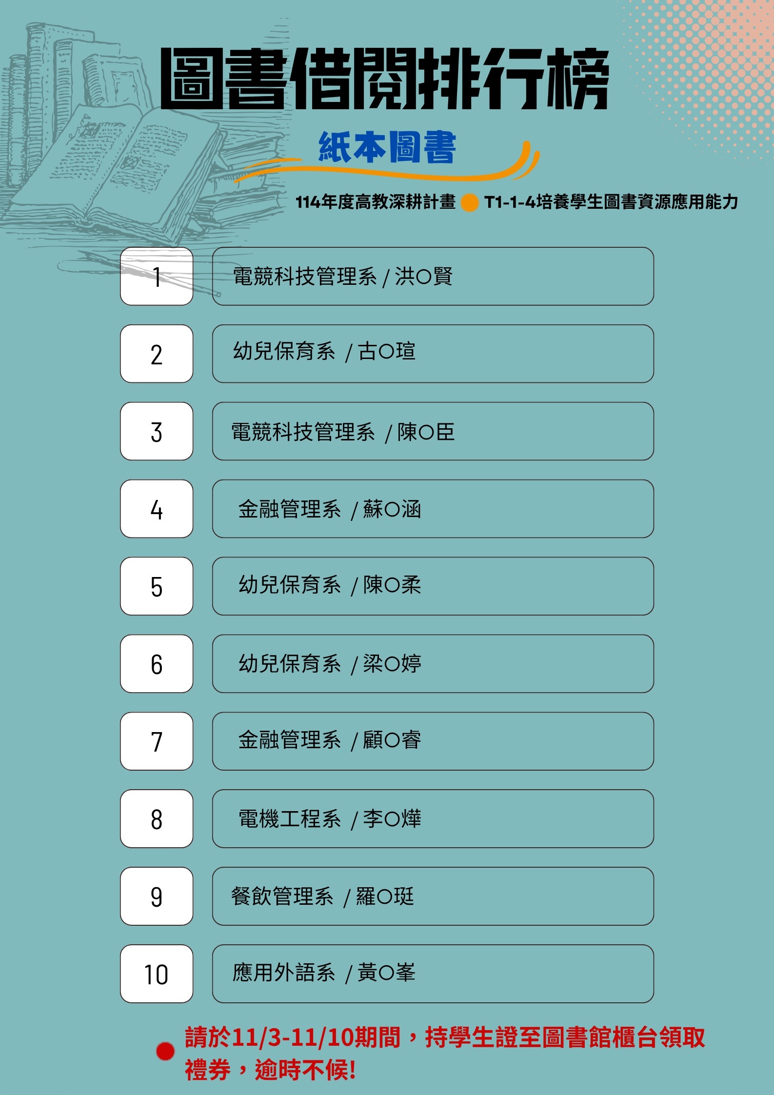 【圖書借閱排行榜】得獎名單公布囉~趕快來看看您上榜了沒?