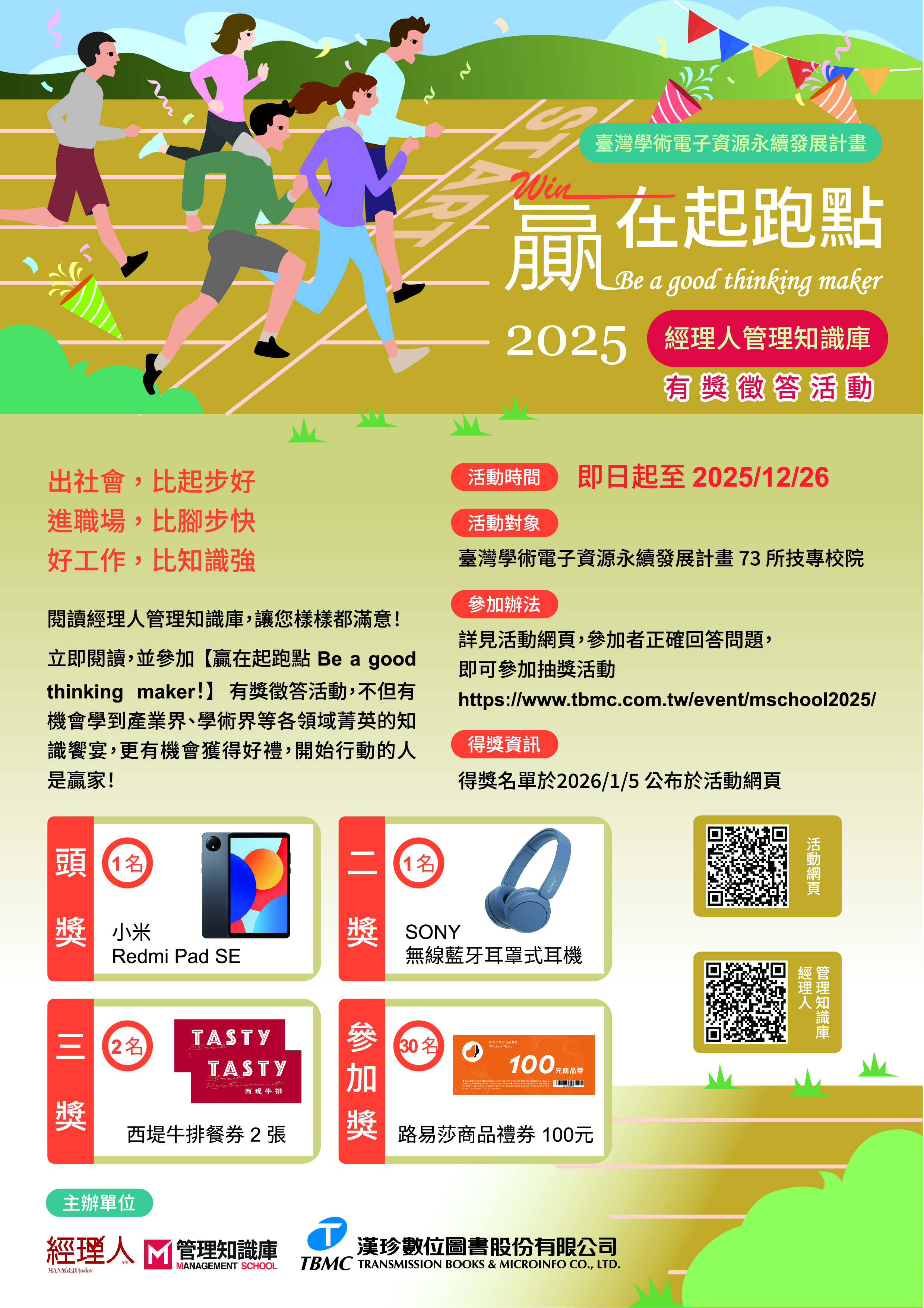 【廠商活動-漢珍】贏在起跑點Be a good thinking maker!經理人管理知識庫有獎徵答活動